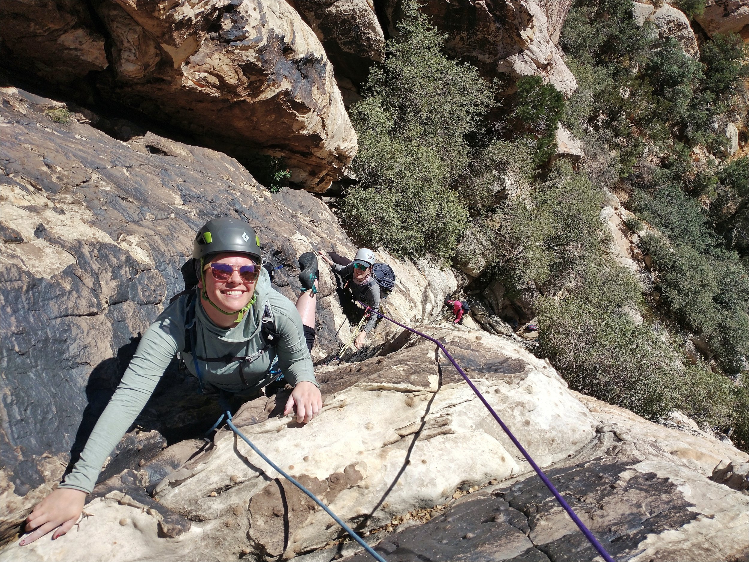 Level up your climbing with expert instruction, technical skill-building, and mentorship in the stunning sandstone canyons of Red Rock, Nevada.